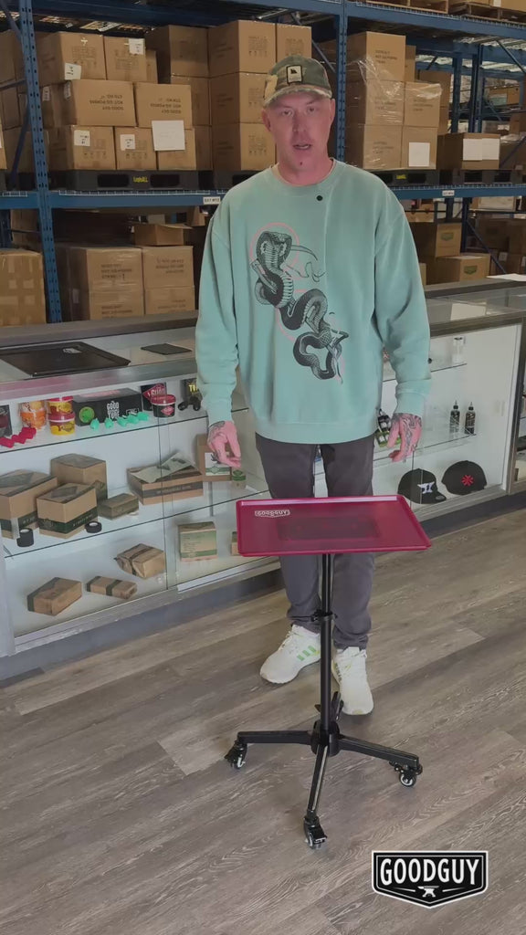 The Good Workstation Tray is available in Smoke Grey or Hot Pink. A slick little rolling work station with a small footprint that is convenient and simplifies your workflow.